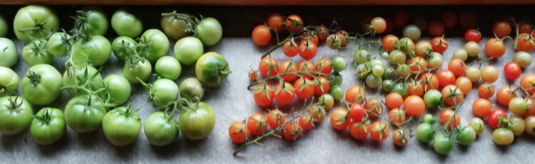 Auf der Fensterbank reifen die letzten Tomaten nach.