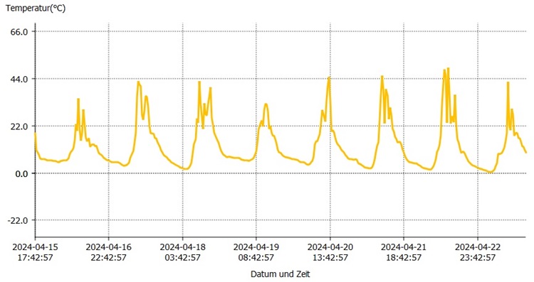„Ich stelle das ins Gewächshaus und dann wird das schon.“ Nix da! Zumindest im Frühjahr sind tägliche Beobachtung und ggf. Reaktionen unbedingt nötig. Ich habe dafür jetzt einen Klimadaten-Logger im Einsatz.