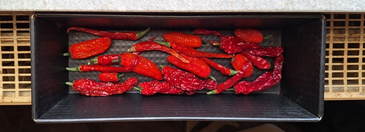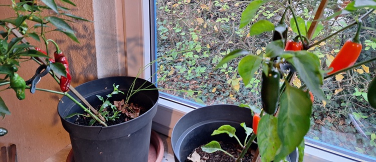 Während die neuen Chilipflanzen für 2025 schon kühl und hell auf einer Fensterbank stehen und kräftige Wurzeln bilden dürfen, warteten die letzten Früchte vom Vorjahr immer noch auf ihre Bestimmung. Ihr wisst ja, dass ich die kräftigsten Pflanzen immer vor dem ersten Frost ins Haus hole und die Früchte in Ruhe ausreifen lasse. Die drei Pflanzen, die diesen Luxus genießen durften, treiben übrigens schon wieder aus und werden im Sommer für die erste Ernte sorgen. Nun galt es nur noch, die letzten Früchte zu verarbeiten.